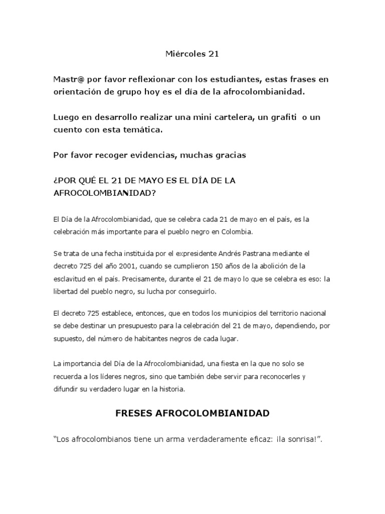 Frases Dia De La Afrocolombianidad : Centro De Estudios Politicos Y Sociales Del Pueblo Afrocolombiano Cepsafro Dia Nacional De La Afrocolombianidad Dia 21 Mes De La Afrocolombianidad : Desde 2001 se declaró el mes de mayo como el mes de la herencia africana con la resolución 0740.